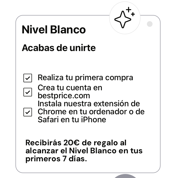 Bestprice dispone de un programa de fidelización por niveles, en el que dependiendo del nivel en el que estés recibirás una ventajas u otras.