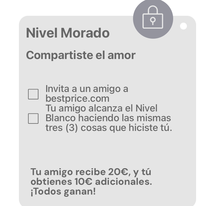 Cuando tu amigo alcance el Nivel Blanco, recibirá 20€ y tú obtendrás 10€ extra.
