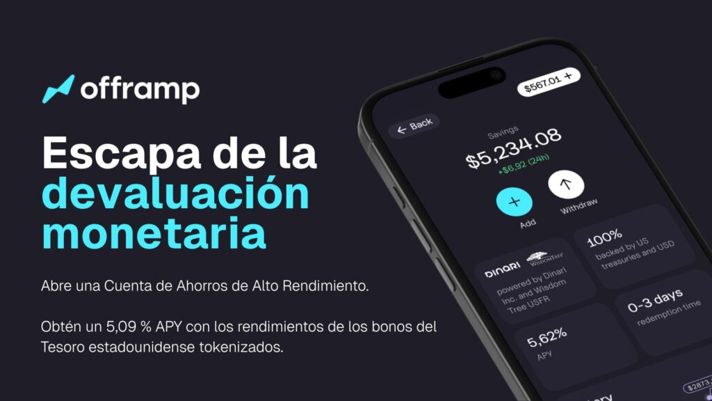 Offramp está disponible en 110 países, también disponen de cuentas de intereses y servicios de inversión.
