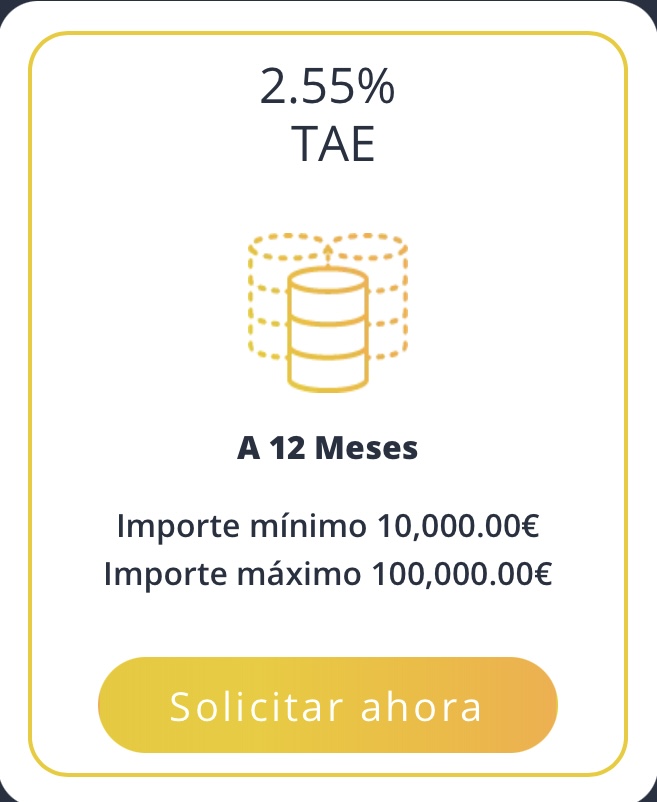 La entidad ofrece actualmente en España depósitos a plazo fijo con atractivos intereses para rentabilizar tus ahorros. Podrás obtener hasta el 2.55% TAE de rentabilidad.