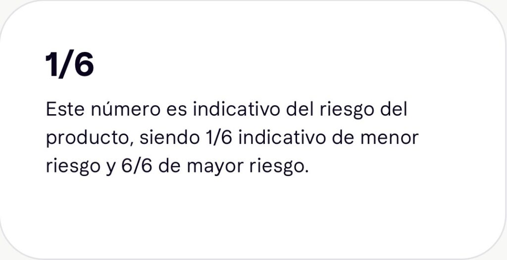 * 1/6 Este número es indicativo del riesgo del producto, siendo 1/6 indicativo de menor riesgo y 6/6 de mayor riesgo.