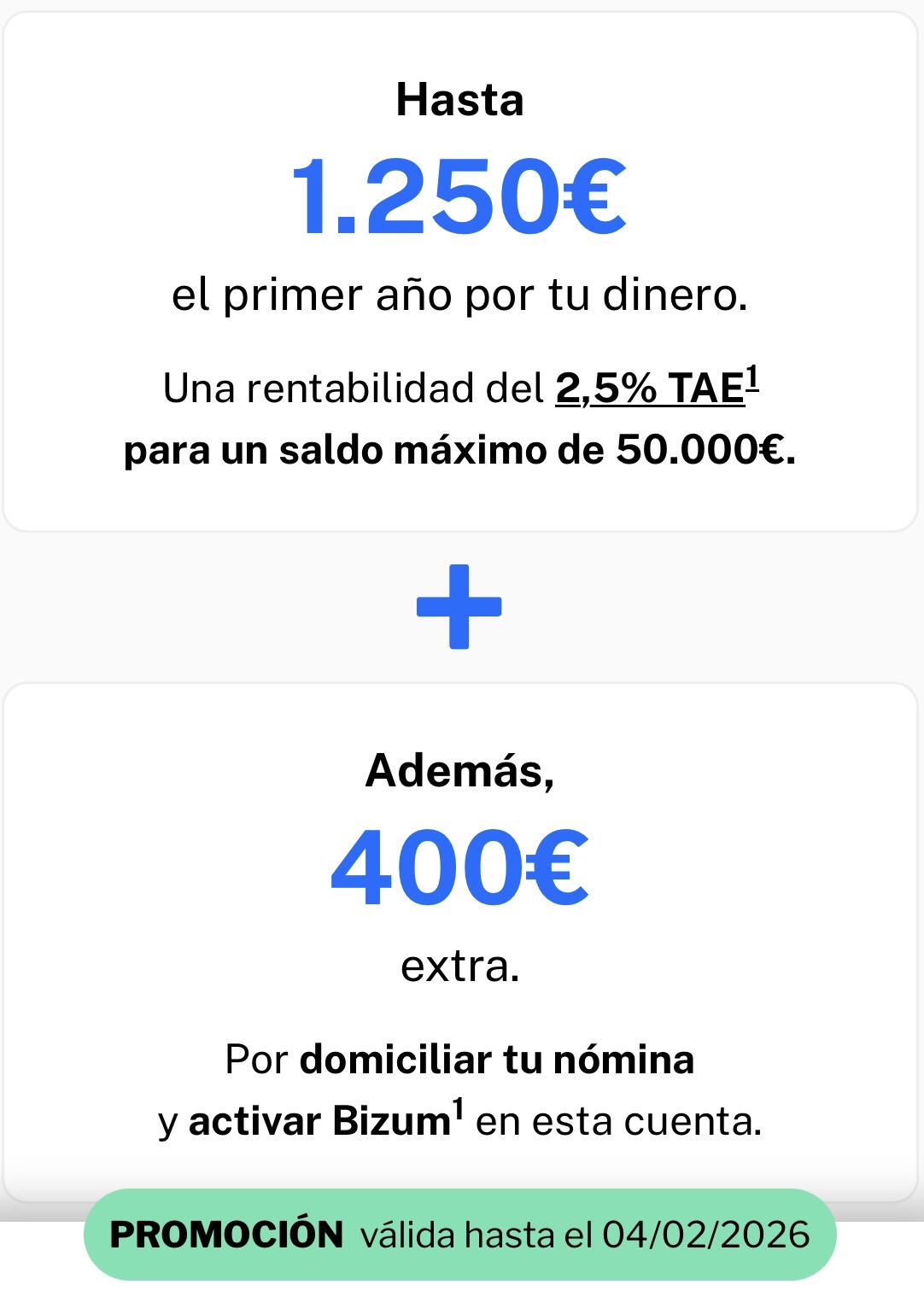 - Cuenta de ahorro remunerada hasta el 2.15% TAE