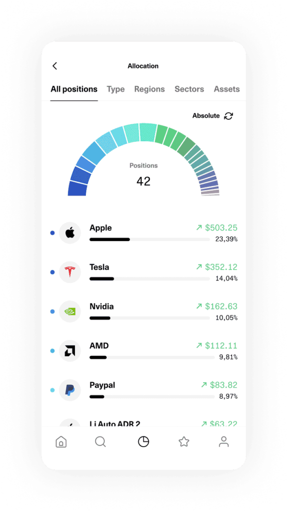 Su rastreador de carteras te permite hacer un seguimiento de todos los activos que te interesen, ya sean acciones tradicionales o ETFs, pero también criptomonedas, materias primas, arte, objetos de lujo y bienes inmuebles.