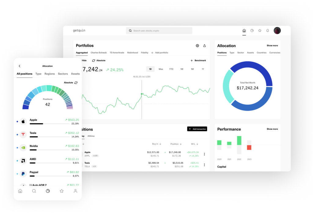 Getquin es un tracker/herramienta financiera con la que podrás conectar y sincronizar todos tus brókers, exchanges de criptomonedas, patrimonio y bancos en una única APP.