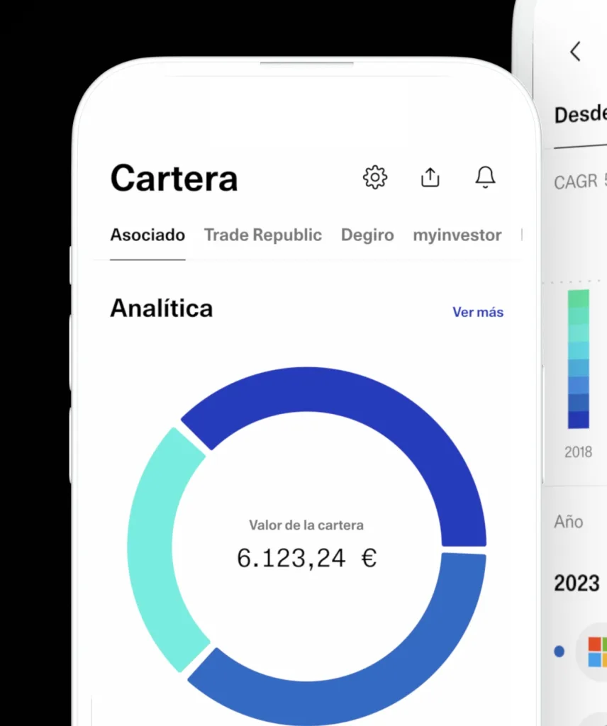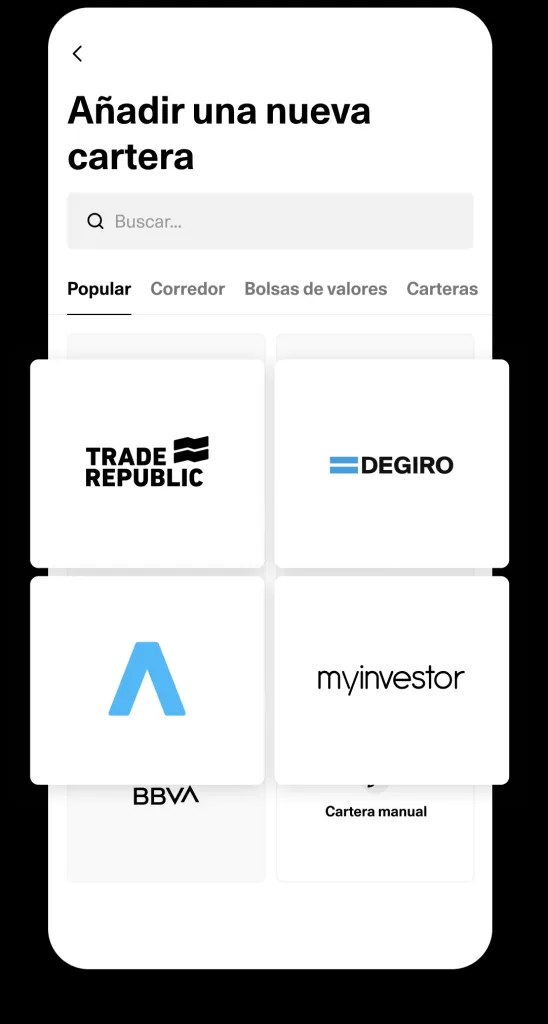 Realiza un seguimiento de acciones, ETFs, fondos y añade cualquier otro activo alternativo como bienes inmuebles, inversiones, colecciones de lujo, arte y materias primas.