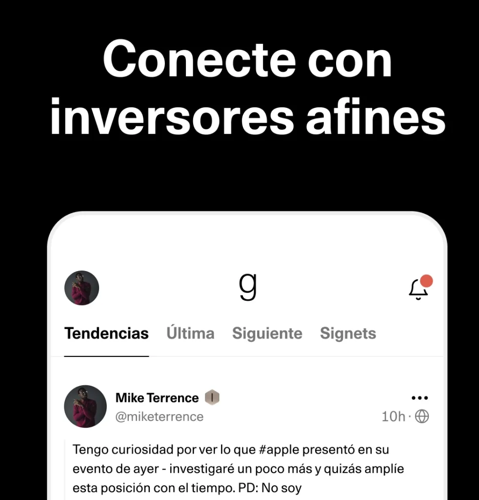 Además podrás conectar con su comunidad global de inversores a través de sus funcionalidades sociales.